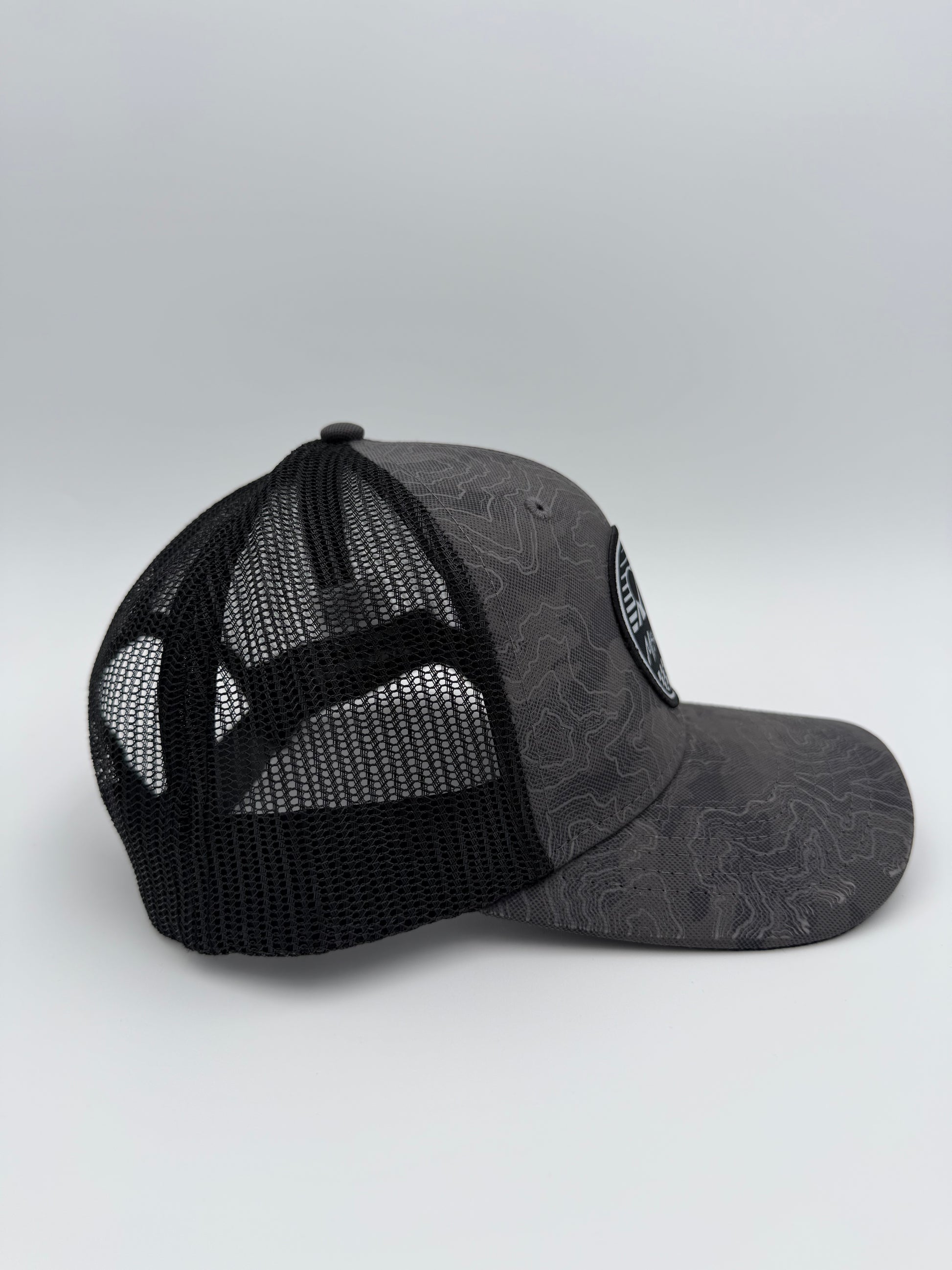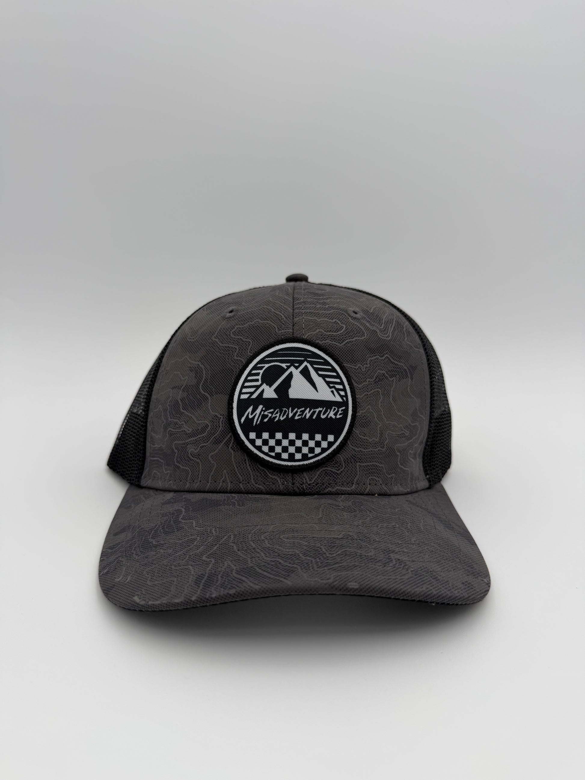 The Icon logo on a topographic themed premium hat. Perfect for any Misadventure.